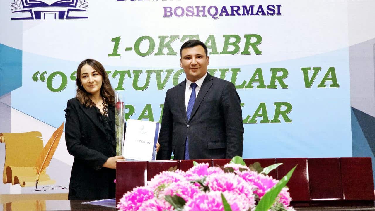 1-oktyabr — “O‘qituvchi va murabbiylar” kuni munosabati bilan ta’lim-tarbiya tizimida alohida o‘rnak ko‘rsatgan xodimlardan professional ta’lim muassasalari bir guruhpedagog xodimlarga O‘zbekiston Respublikasi Oliy ta’lim, fan va innovatsiyalar vazirning Faxriy yorlig‘i hamda Tashakkurnomalarini Buxoro viloyat hududiy boshqarmasi boshli’g’i A.Naimov tomonidan topshirildi.