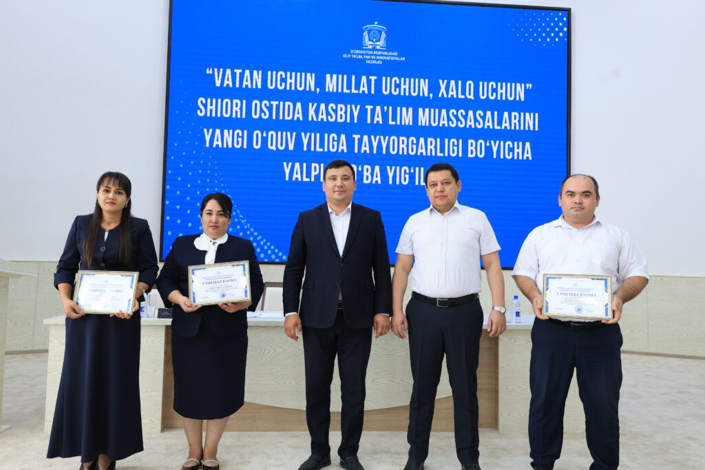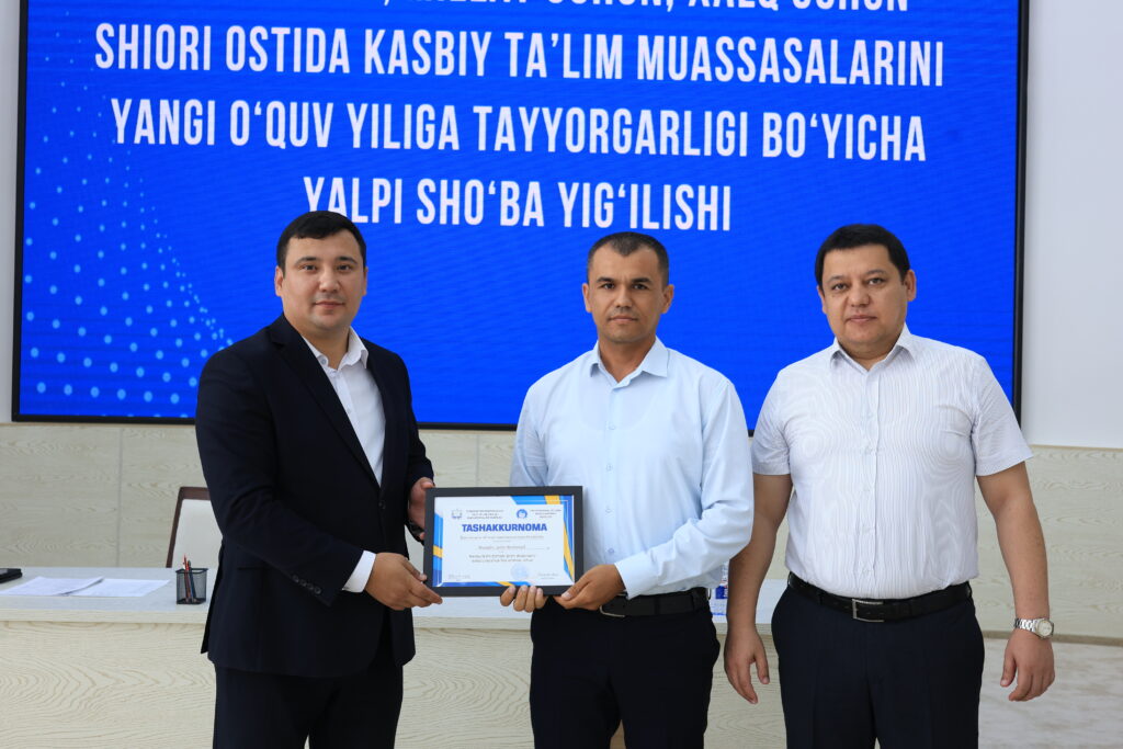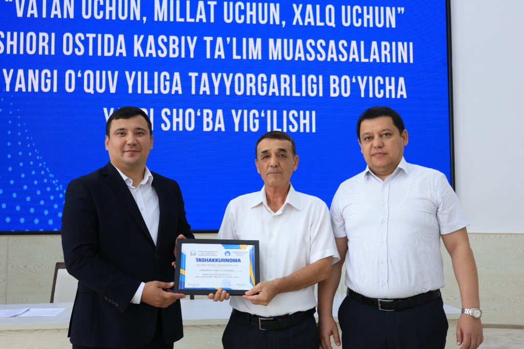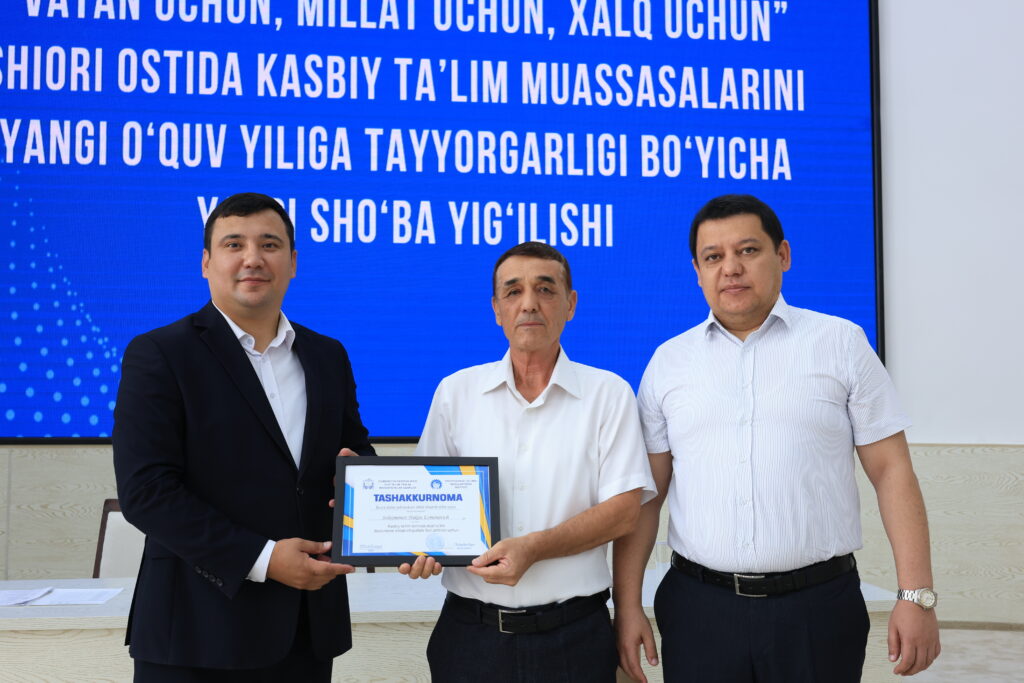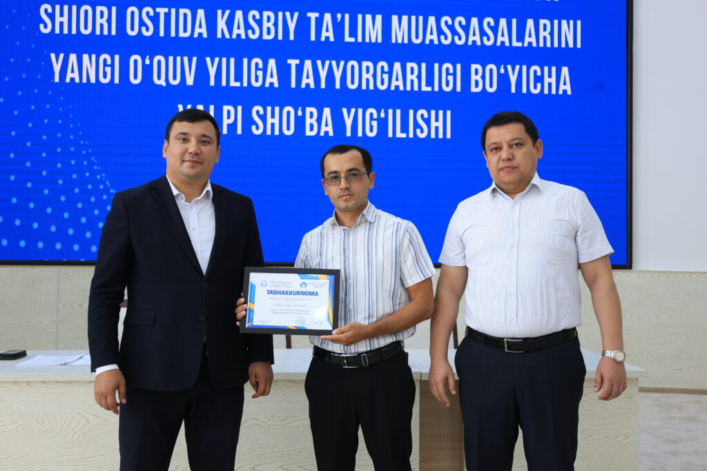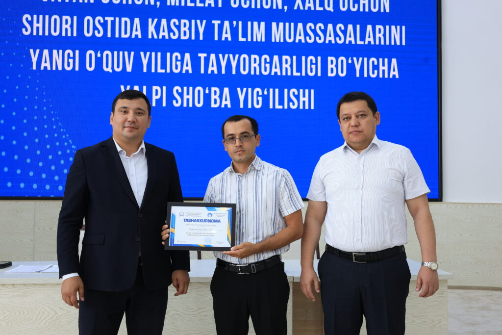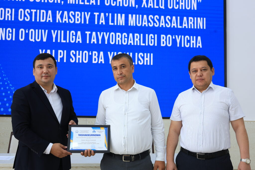 Tadbir yakunida kasbiy ta’lim tizimida samarali mehnat qilib kelayotgan va ta’lim jarayonlarida yuqori natijalarga erishgan bir qator pedagog xodimlar alohida e’tirof etildi hamda ularga tashakkurnomalar topshirildi.