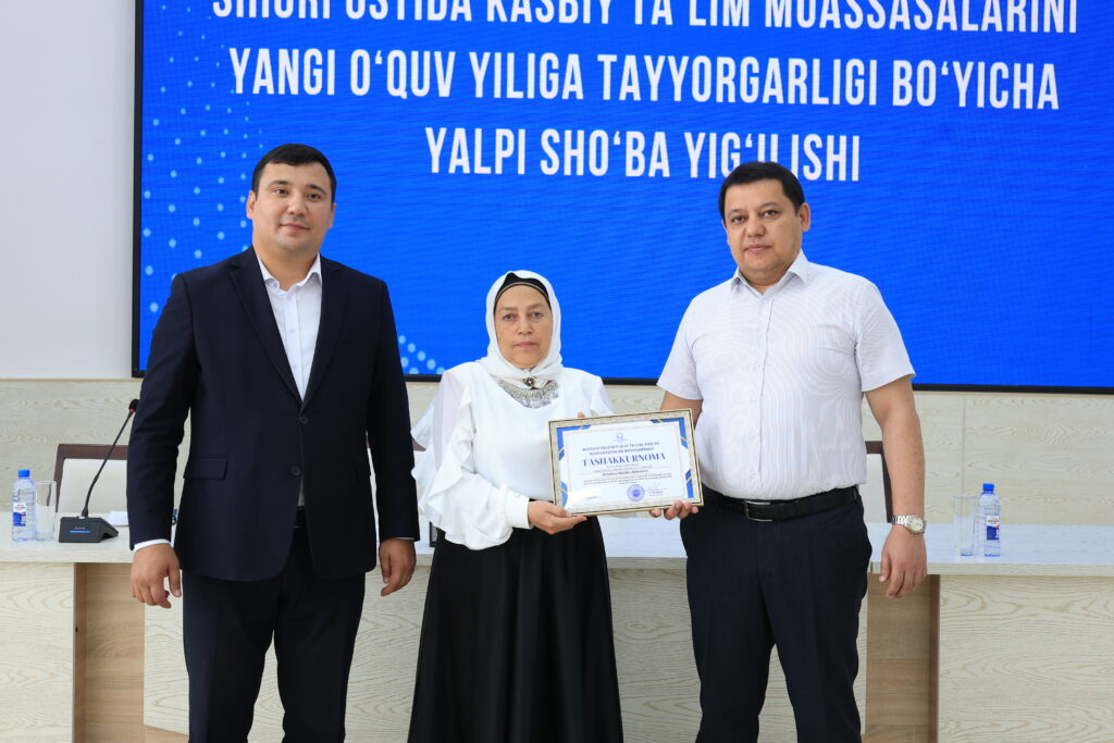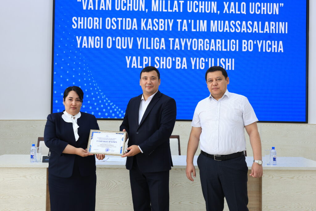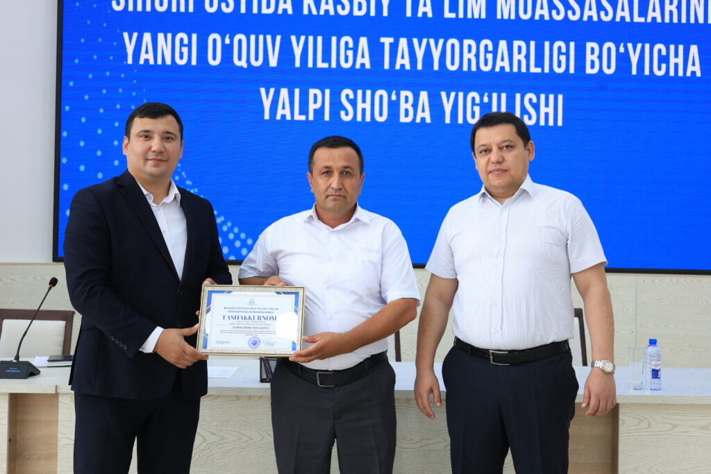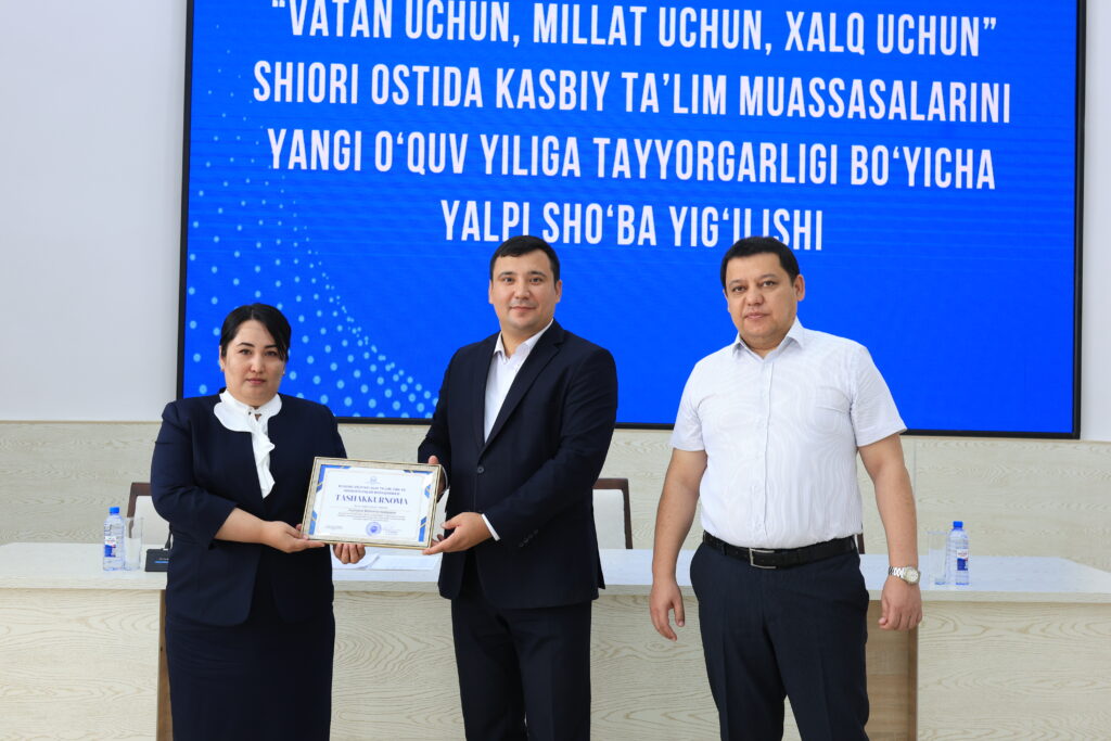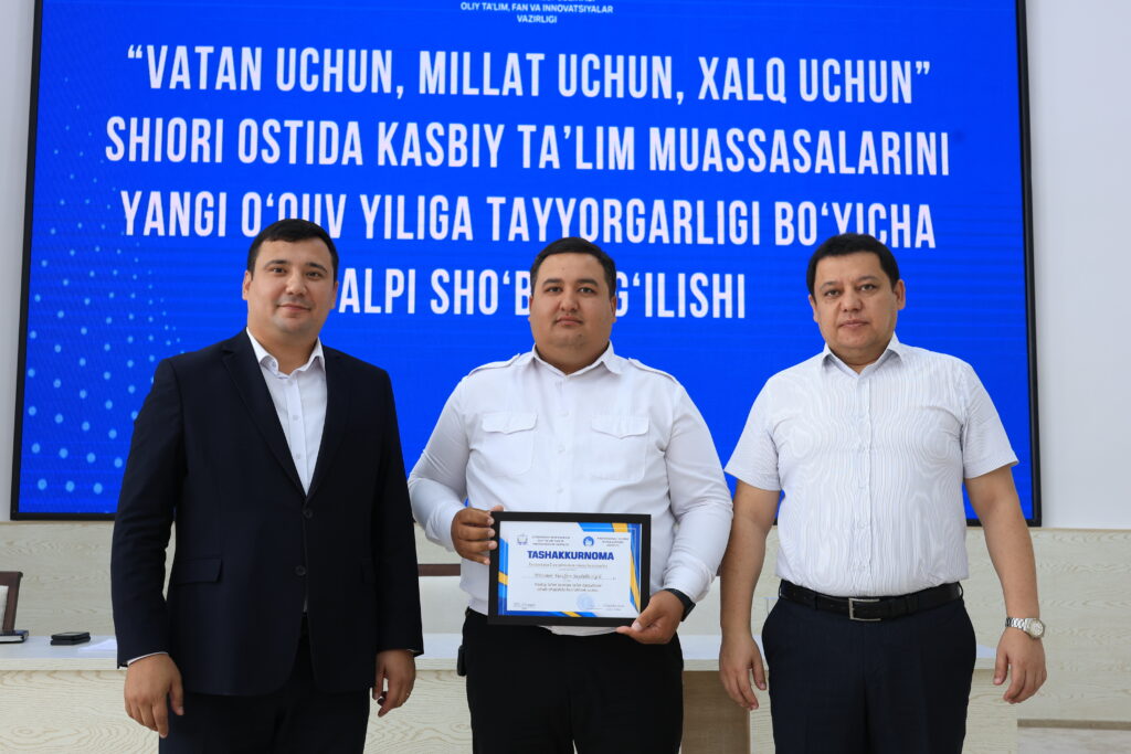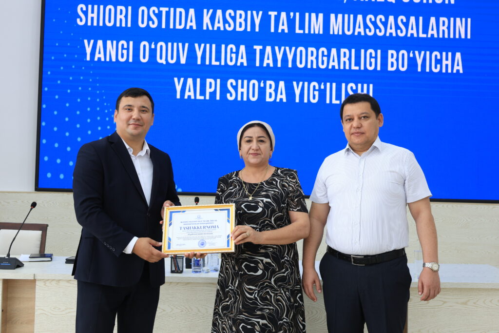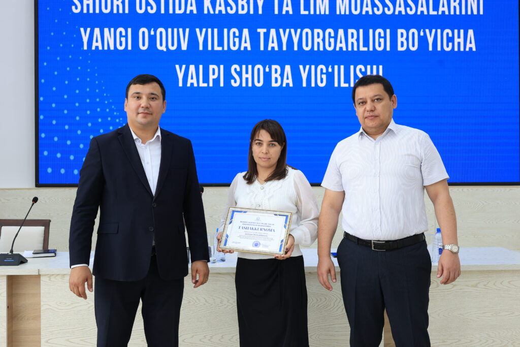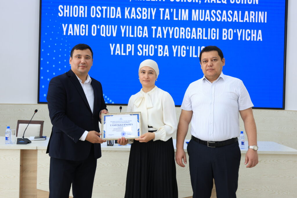 Tadbir yakunida kasbiy ta’lim tizimida samarali mehnat qilib kelayotgan va ta’lim jarayonlarida yuqori natijalarga erishgan bir qator pedagog xodimlar alohida e’tirof etildi hamda ularga tashakkurnomalar topshirildi.