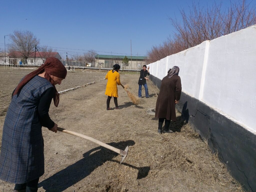 Kasb-hunar maktabi hududi yo’laklari tozalandi, bardyur va daraxtlar oqlandi, mevali va manzarali daraxtlarga shakl berildi, mevali ko’chatlar ekildi.